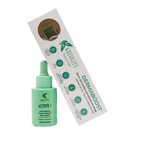 Dermaboost (dermaroller) : stimule la microcirculation et active le bulbe pileux afin d’aider les cheveux qui peinent à pousser à sortir plus facilement.