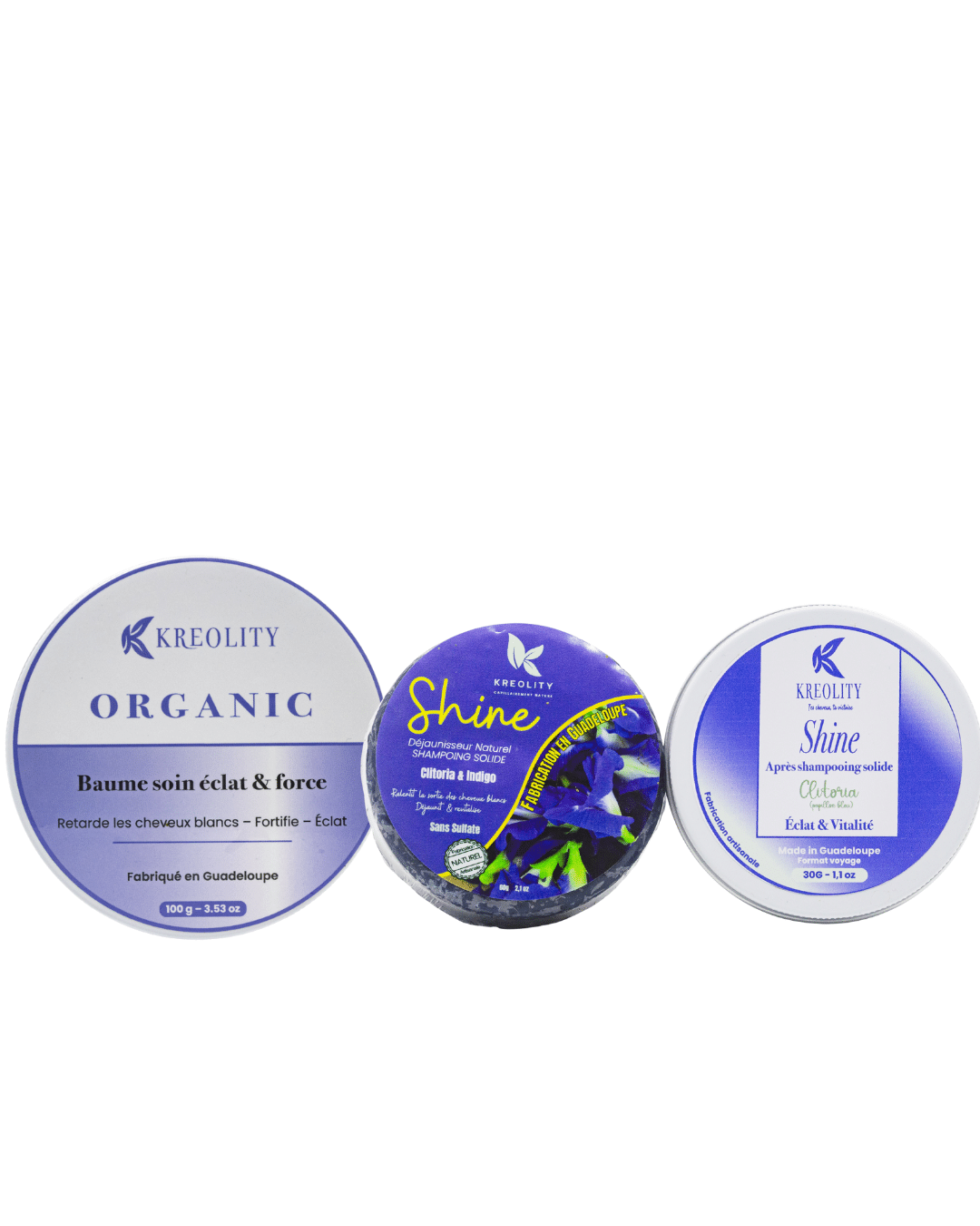 Ce pack Routine Shine  formulé aux fleur de clitoria sublime l’éclat des cheveux blancs, gris et blond mais aussi ravive la couleur des cheveux colorés, revitalisent les cheveux secs, rend la fibre capillaire plus fort , freine la chute des cheveux dévitalisés.